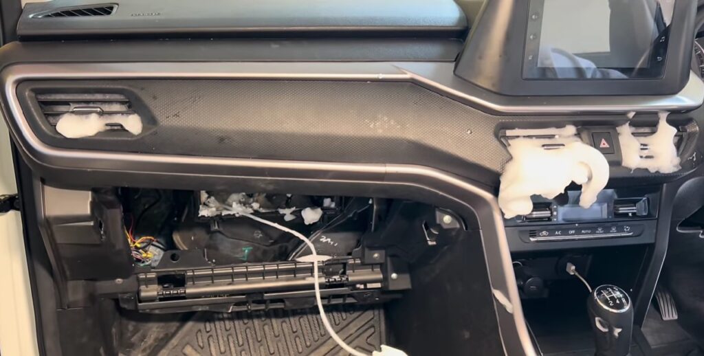 - AC cooling coil can also be cleaned without opening the dash board. We can use water based Solution prepared using liquid dishwasher and mix it with water and it will create foam also.